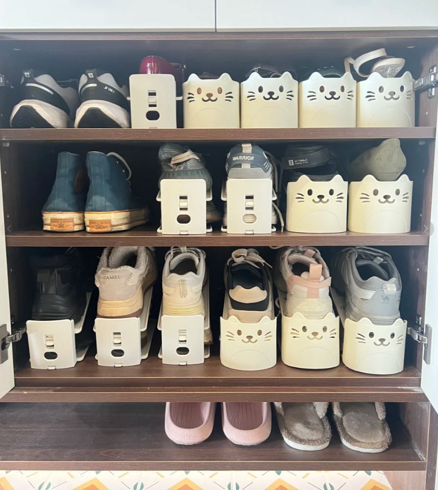 Vertical Expansion: Install retractable shelves to transform a single-story space into a double-story shoe home.